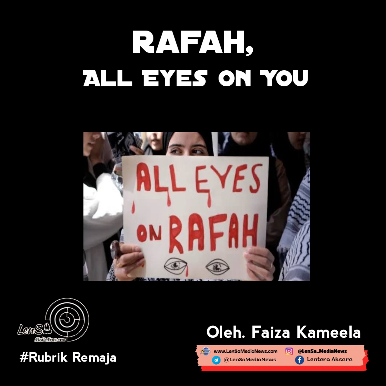 By the way, kamu tahu enggak, siapa pelopor tercetusnya slogan All Eyes on Rafah? Pas banget ya menggambarkan kondisi Rafah saat ini. Fyi, kalimat ini tercetus dari lisan Richard Peeperkom, yaitu seorang perwakilan Organisasi Kesehatan Dunia di wilayah Palestina yang diduduki Isrsel. Ketika pasukan Israel memasuki kota Rafah dan membombardir kota tersebut, Richard Peeperkom mengatakan kepada wartawan, “saat ini semua mata tertuju pada Rafah” (Detik.com, 31-5-2024).