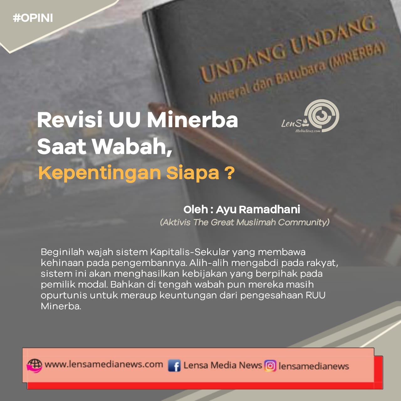 Beginilah wajah sistem Kapitalis-Sekular yang membawa kehinaan pada pengembannya. Alih-alih mengabdi pada rakyat, sistem ini akan menghasilkan kebijakan yang berpihak pada pemilik modal. Bahkan di tengah wabah pun mereka masih opurtunis untuk meraup keuntungan dari pengesahaan RUU Minerba.