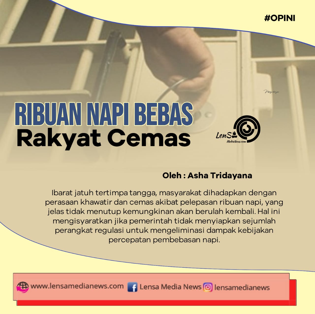 Ibarat jatuh tertimpa tangga, masyarakat dihadapkan dengan perasaan khawatir dan cemas akibat pelepasan ribuan napi, yang jelas tidak menutup kemungkinan akan berulah kembali. Hal ini mengisyaratkan jika pemerintah tidak menyiapkan sejumlah perangkat regulasi untuk mengeliminasi dampak kebijakan percepatan pembebasan napi.