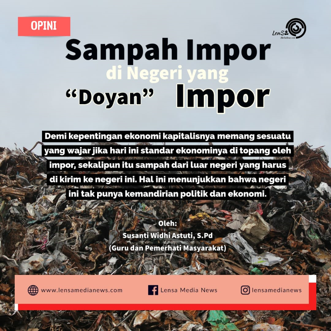 Demi kepentingan ekonomi kapitalisnya memang sesuatu yang wajar jika hari ini standar ekonominya di topang oleh impor, sekalipun itu sampah dari luar negeri yang harus di kirim ke negeri ini. Hal ini menunjukkan bahwa negeri ini tak punya kemandirian politik dan ekonomi.