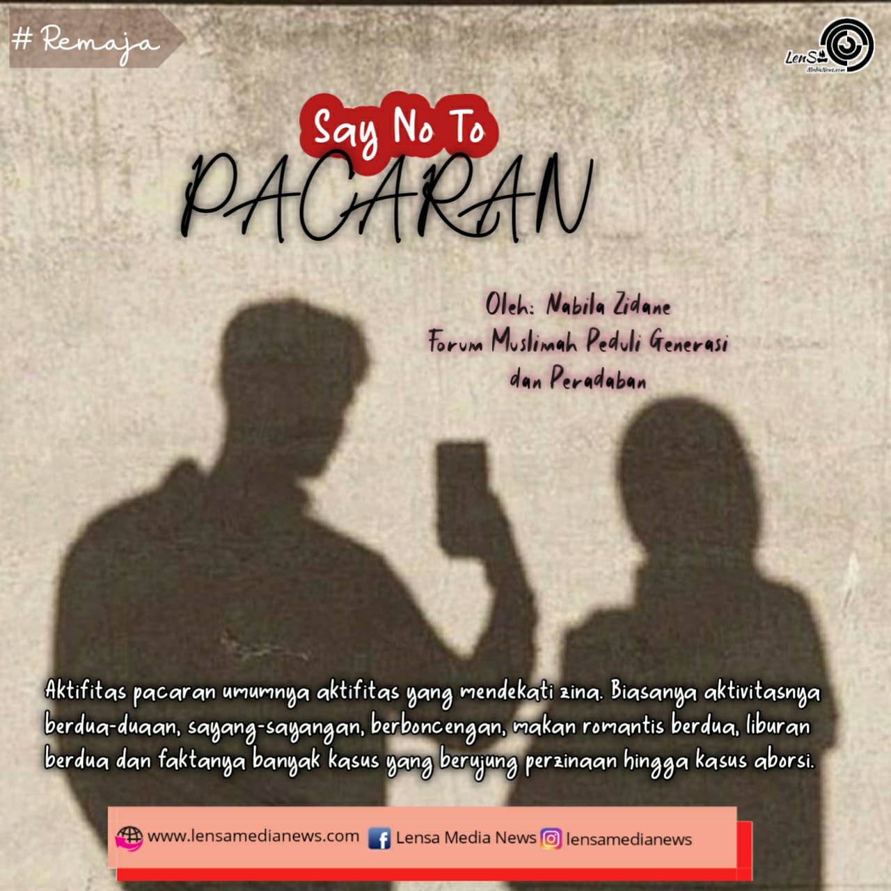 Negara inilah yang disebut dengan negara khilafah. Dalam khilafah, media digunakan untuk mengedukasi dan menguatkan ketakwaan individu masyarakat. Konten-konten yang merusak pemikiran Islam tak akan pernah mendapat ruang. Jadinya, orang yang mengakses media akan semakin pintar dan semakin terinspirasi untuk menjadi salih dan salihah. Ternyata sistem Islamlah yang kita butuhkan untuk memusnahkan aktivitas maksiat pacaran.