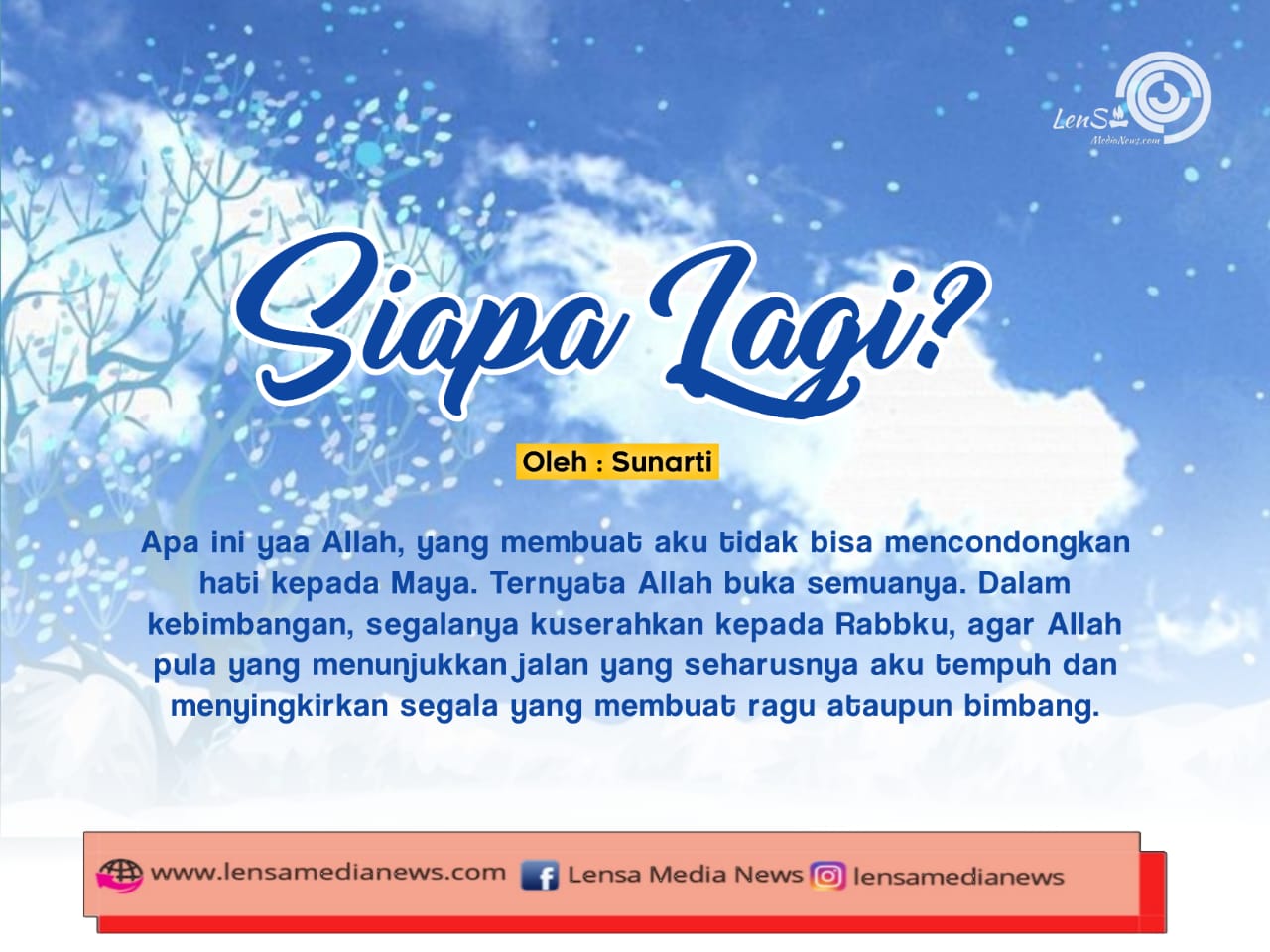 Apa ini yaa Allah, yang membuat aku tidak bisa mencondongkan hati kepada Maya. Ternyata Allah buka semuanya. Dalam kebimbangan, segalanya kuserahkan kepada Rabbku, agar Allah pula yang menunjukkan jalan yang seharusnya aku tempuh dan menyingkirkan segala yang membuat ragu ataupun bimbang.
