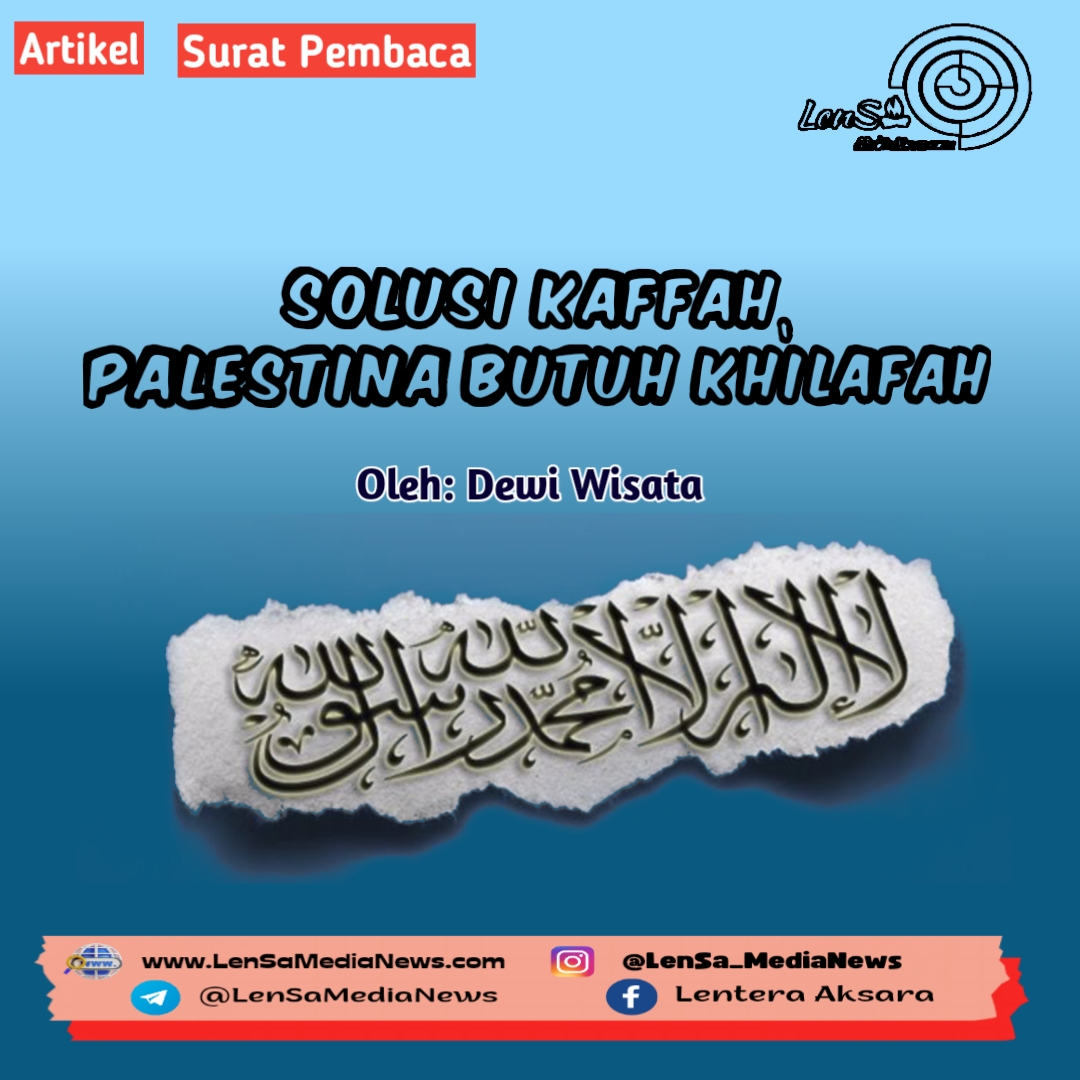Konflik Palestina – Israel hanya dapat terselesaikan secara kaffah dengan adanya khilafah. Kepemimpinan yang satu yang dapat melindungi dan memayungi negeri-negeri Muslim. Palestina butuh Khilafah. Karena hanya Khilafah yang mampu mengussir Israel dari bumi Palestina. Dewi Wisata. [LM/IF/ry].