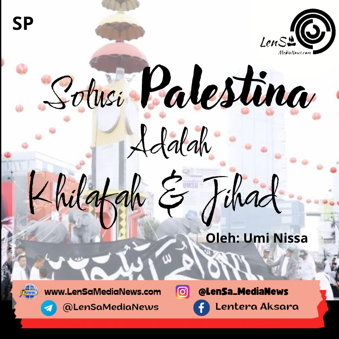 Satu-satunya solusi yang tuntas adalah mewujudkan jihad melawan zionis. Umat Islam harus menyeru para penguasa muslim untuk menggerakkan tentaranya untuk berjihad melawan zionis. Umat harus dibangun kesadaran akan solusi tuntas penjajahan Palestina oleh zionis. Selain itu agar mendapatkan perlindungan hakiki, maka tegaknya khilafah adalah satu keniscayaan. Karena hanya khilafah yang akan memberikan pembelaan dan perlindungan atas tanah dan kaum muslim di Palestina dan semua tempat di mana kaum muslim teraniaya hanya khilafah yang mampu menghadapi musuh umat Islam.