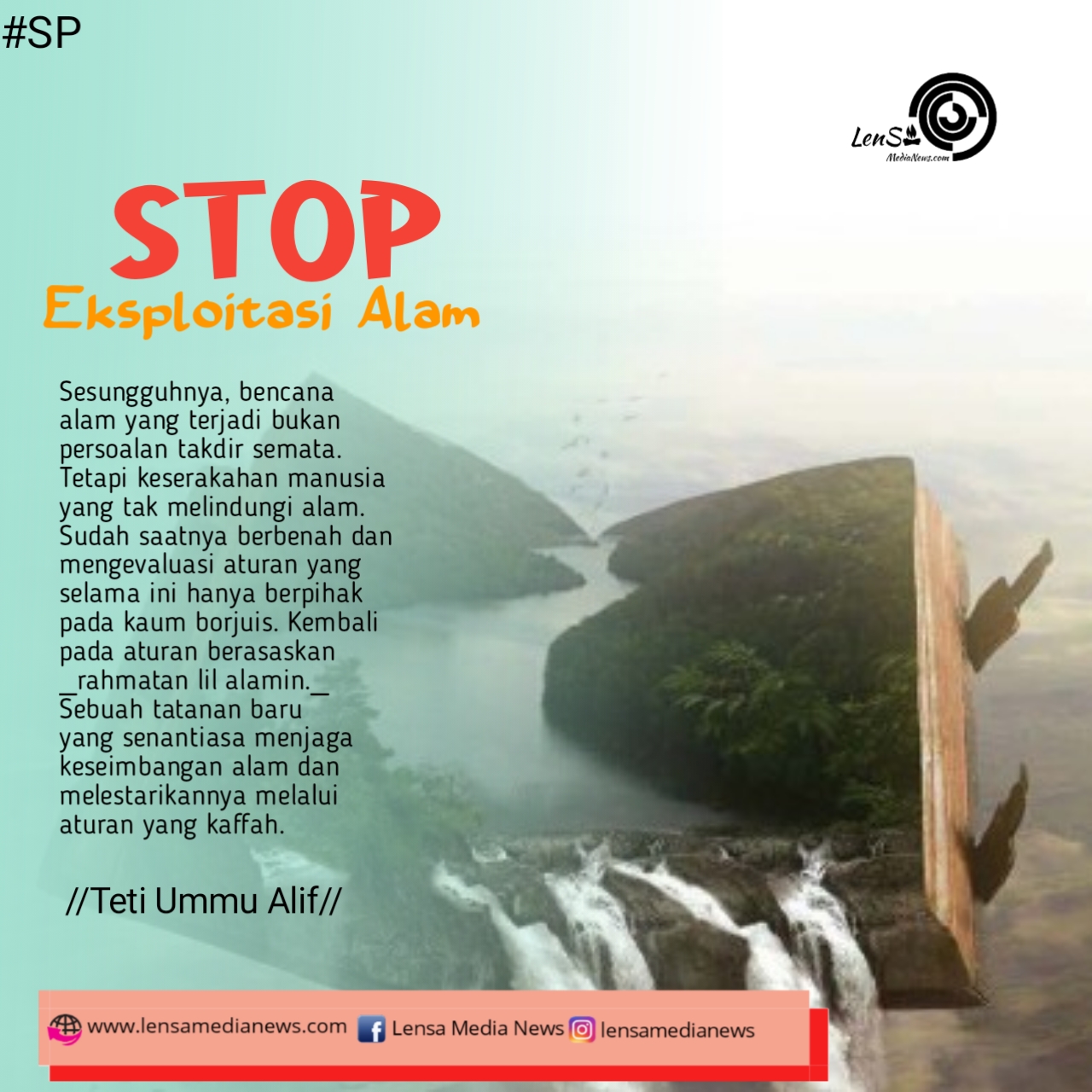 Sesungguhnya, bencana alam yang terjadi bukan persoalan takdir semata. Tetapi keserakahan manusia yang tak melindungi alam. Sudah saatnya berbenah dan mengevaluasi aturan yang selama ini hanya berpihak pada kaum borjuis. Kembali pada aturan berasaskan rahmatan lil alamin. Sebuah tatanan baru yang senantiasa menjaga keseimbangan alam dan melestarikannya melalui aturan yang kaffah. Wallahu a’lam bisshowwab.