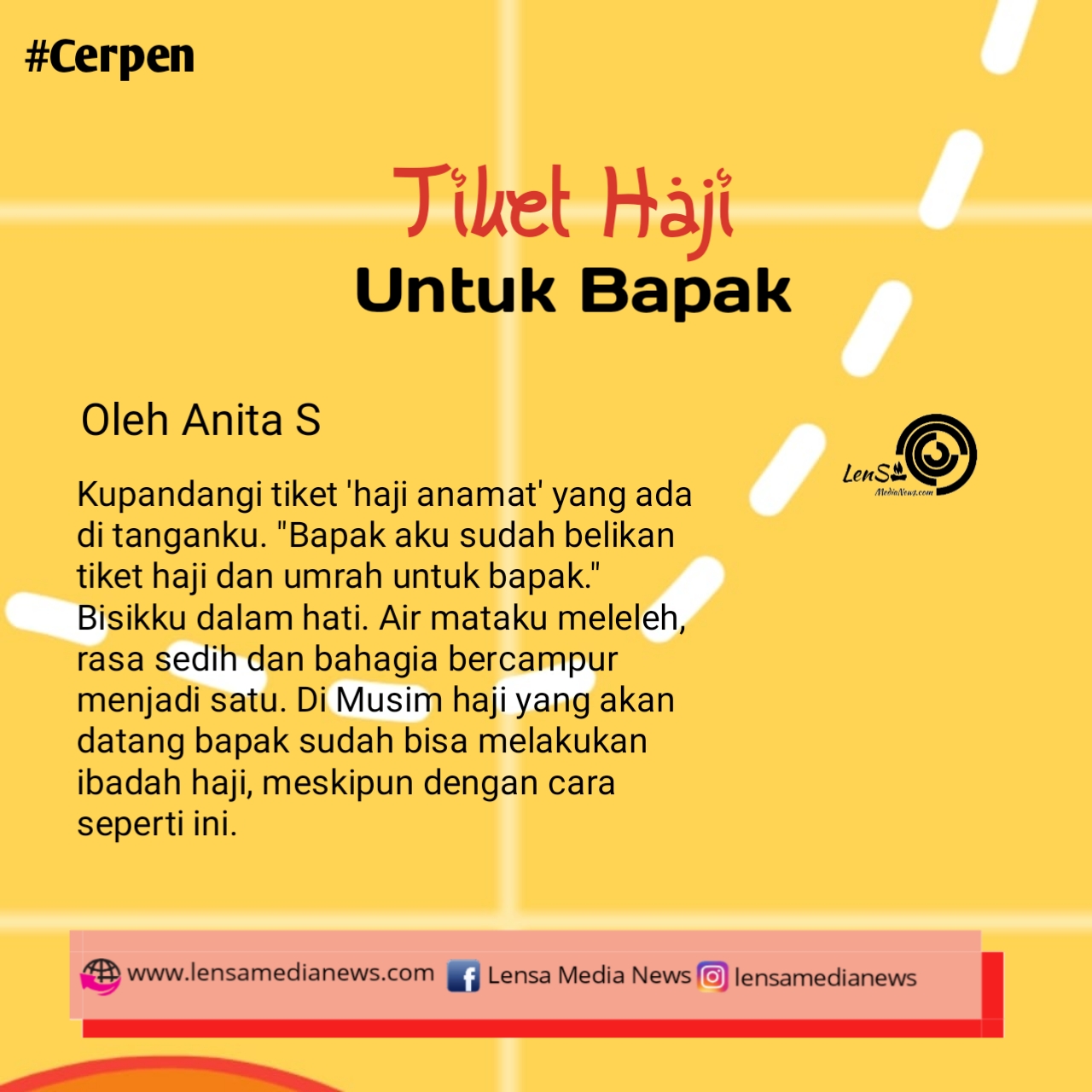 Kupandangi tiket ‘haji amanat’ yang ada di tanganku. “Bapak aku sudah belikan tiket haji dan umrah untuk bapak.” Bisikku dalam hati. Air mataku meleleh, rasa sedih dan bahagia bercampur menjadi satu. Di Musim haji yang akan datang bapak sudah bisa melakukan ibadah haji, meskipun dengan cara seperti ini.