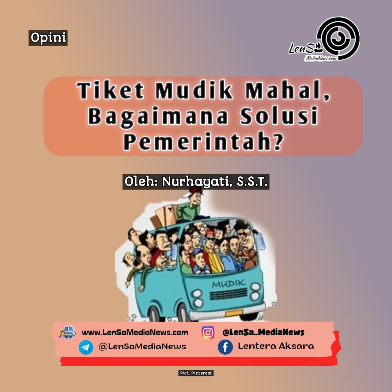 LenSa Media News _ Tak terasa bulan ramadhan sudah mencapai 2 pekan. Tentu sudah dekat dengan hari raya Idul fitri. Waktu dimana yang dijadikan momen untuk berkumpul bersama keluarga dikampung halaman. Dalam tradisi Indonesia adalah mudik yang menjadi momen sekali dalam setahun dan tidak terlepas dari momen hari raya lebaran. Namun masih menjadi problematika ketika momen mudik justru menuai kekhawatiran terlebih kenaikan transportasi juga beberapa waktu lalu telah rilis perubahan tarif tol wilayah Jawa khususnya.
