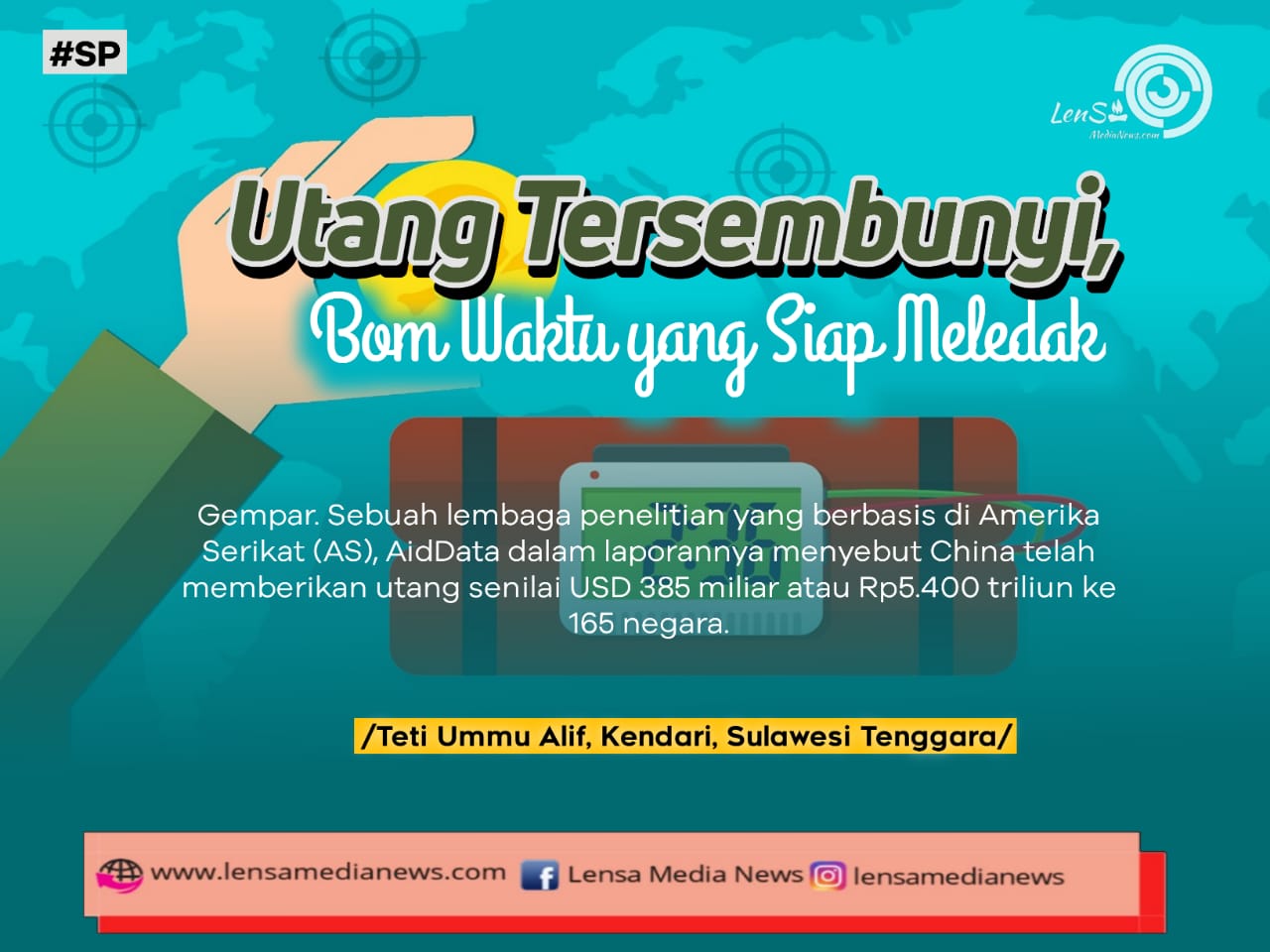 Gempar. Sebuah lembaga penelitian yang berbasis di Amerika Serikat (AS), Aid Data dalam laporannya menyebut China telah memberikan utang senilai USD 385 miliar atau Rp5.400 triliun ke 165 negara. Menariknya, laporan tersebut menyebutkan bahwa utang yang diberikan oleh China ke negara lain tersebut disembunyikan dari Bank Dunia dan IMF dengan cara memberikan pinjaman ke bukan lembaga negara, sehingga pelaporannya sulit dideteksi (Merdeka.com, 07/10/2021).